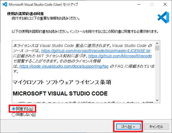 図59の画面では,「同意する」を選択して [次へ] をクリックします.