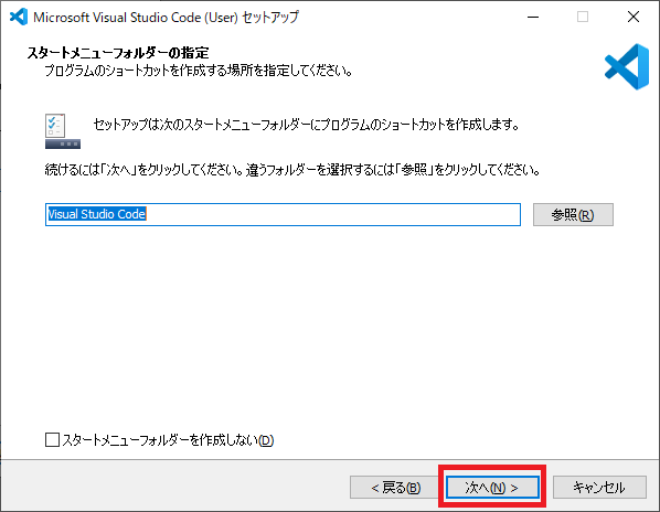 図61の画面では,スタート・メニューに登録する名前を設定します.今回はデフォルトのまま [次へ] をクリックします.