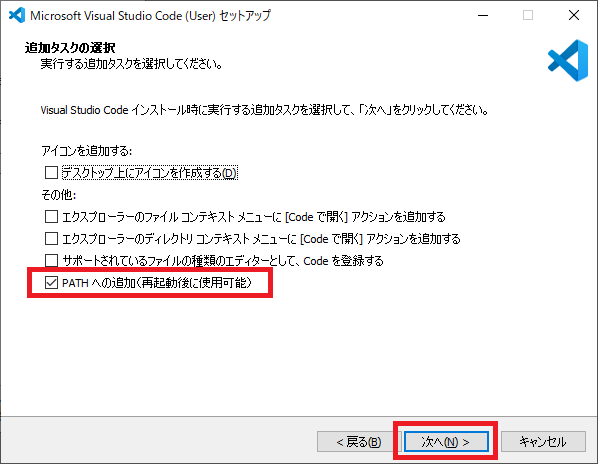 図62の画面では,「PATHへの追加 」にチェックを付けて [次へ] をクリックします.