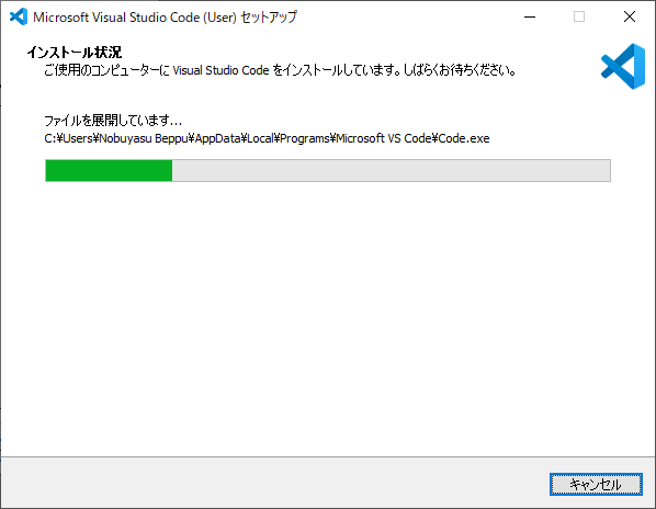 図19の画面で [Install] をクリックするとインストールが始まります.このとき「このアプリがデバイスに変更を加えることを許可しますか?」と聞かれるので「はい」をクリックします.