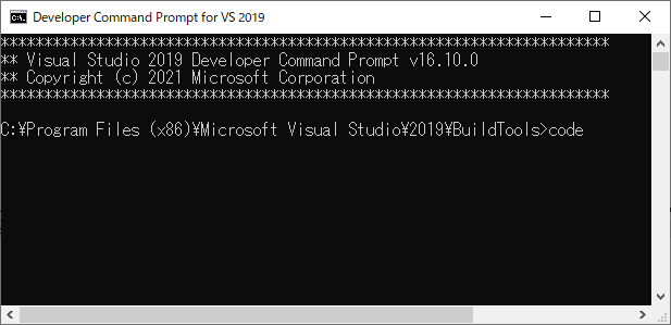 “Visual Studio Code”を起動するときは,常に“Developer Command Prompt”から起動するようにしてください.通常の方法で起動(Windowsスタート・メニューなどから起動)した場合は,正常にビルドできないことがあるので注意してください.
