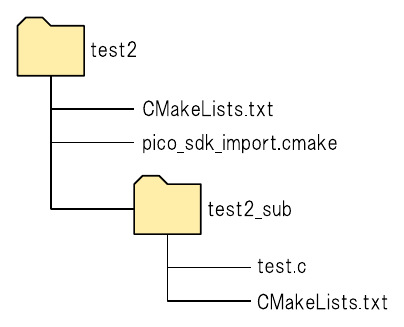 ここでは図84のように,“C:/Pico/test2”というディレクトリの下に“test2_sub”というサブディレクトリがある状況を想定してビルドを実行する方法を説明します.