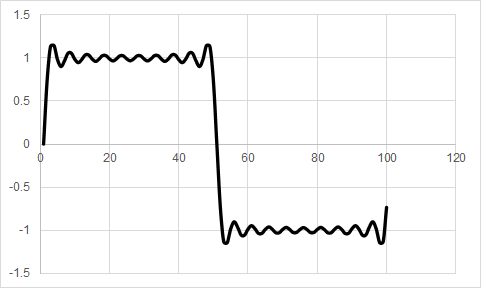 三角関数を組み合わせて矩形波を作る実験