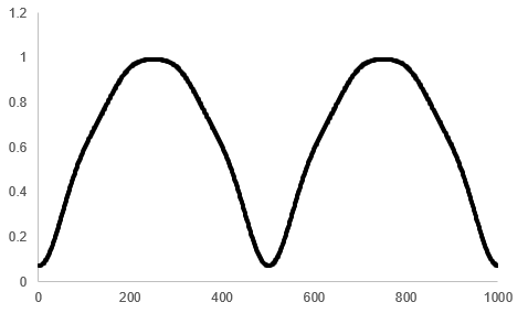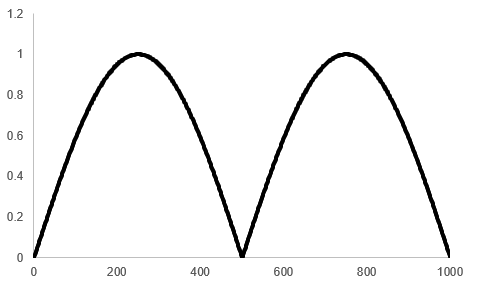 図22に“coeff_num = 400”として計算したフーリエ級数のグラフを示します.かなり全波整流波形に近づいていることがわかります.