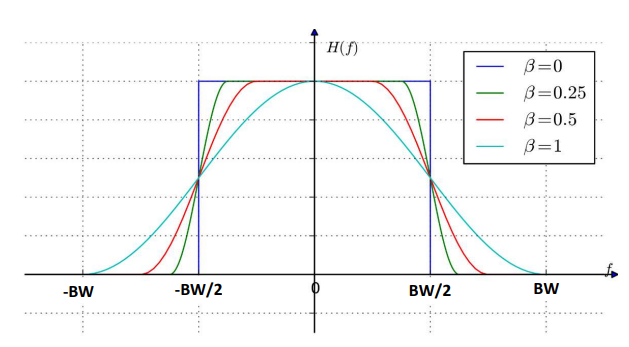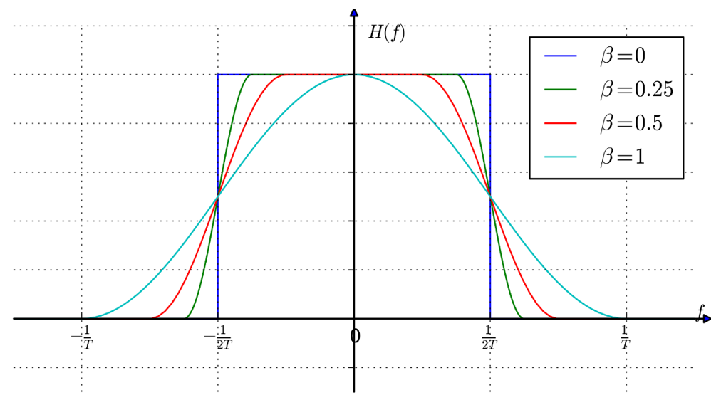 $beta$は,帯域の広がり具合を定義する帯域制限の係数「ロールオフ率」です(図10).