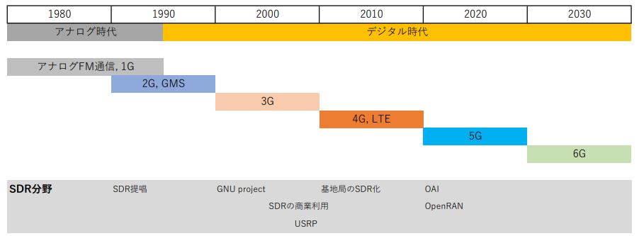 FM変調に低速データ通信を重畳させたトランキング・システムなどを経て,90年代以降急速に通信そのものをディジタル化する流れが急速に発展し,それ以降は10年ごとに大きな技術革新の波が訪れています.