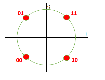 図23 QPSKの$IQ$平面図.1シンボル当たり2ビット