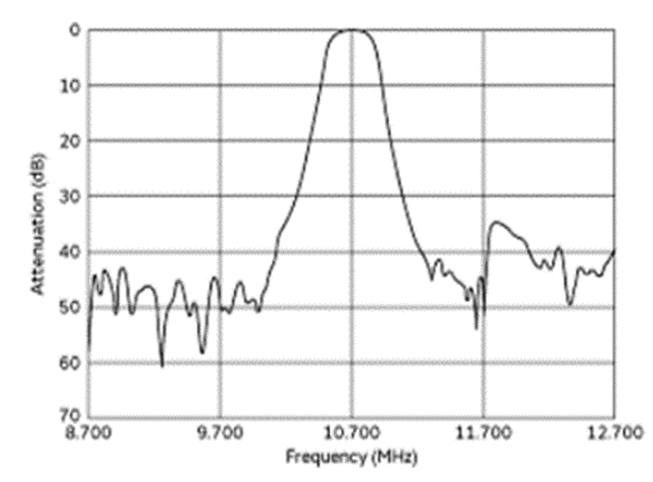 図4は,FM放送受信用の帯域$f_{BW}=300$kHzのBPFを想定した,セラミック・フィルタ(中心周波数10.7MHz)の通過特性です.