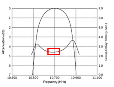 図4 IF用アナログ・フィルタの群遅延特性例(SFECF10M7EA00,村田製作所)