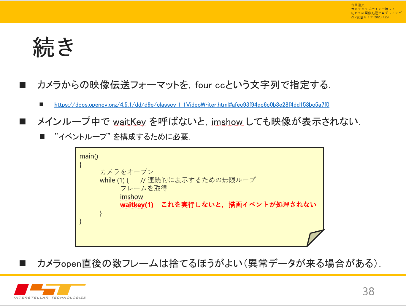 - 関連セミナ:[Webinar/KIT]カメラ×ラズパイで一緒に!初めての画像処理プログラミング
