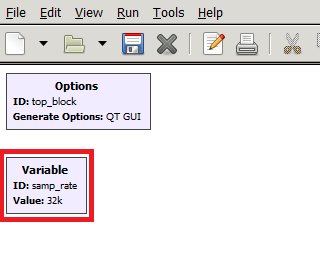 新しいファイルを作成すると,図26のように“Variable”という変数を設定するためのブロックが用意されています.このブロックでは“samp_rate”という変数が定義されているので,素直にこれをサンプリング・レートを設定するための変数として使うことにします.