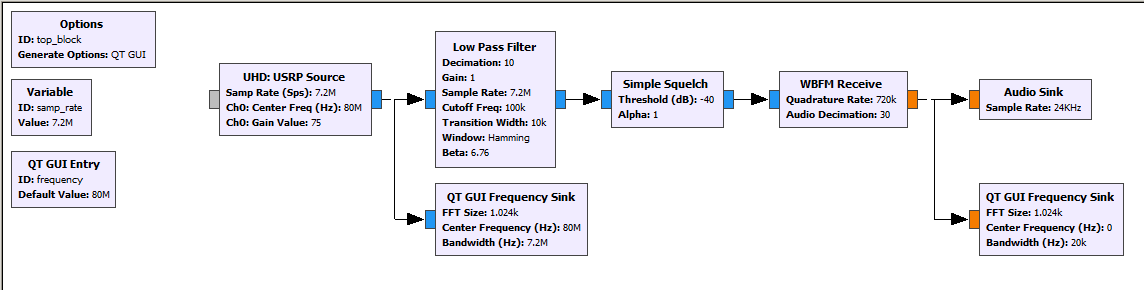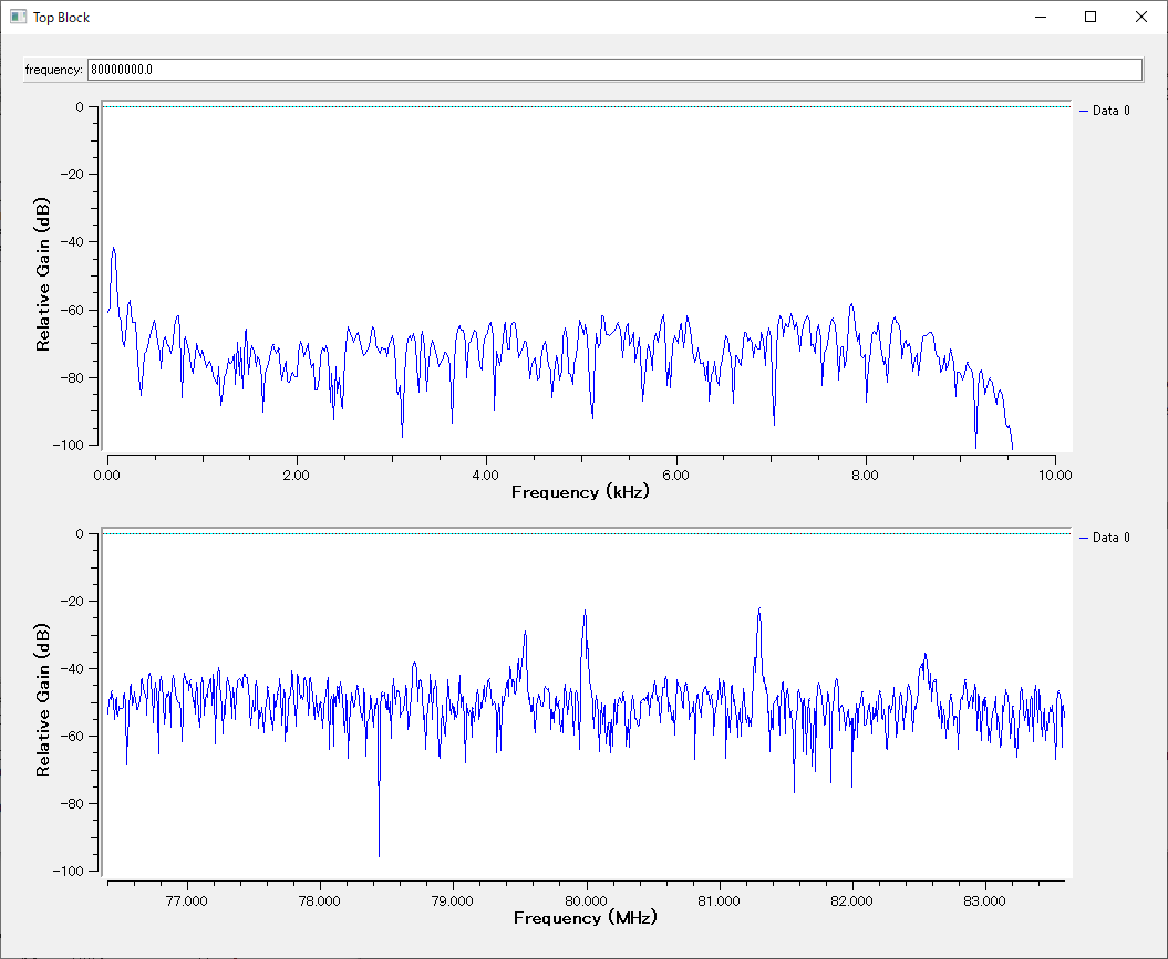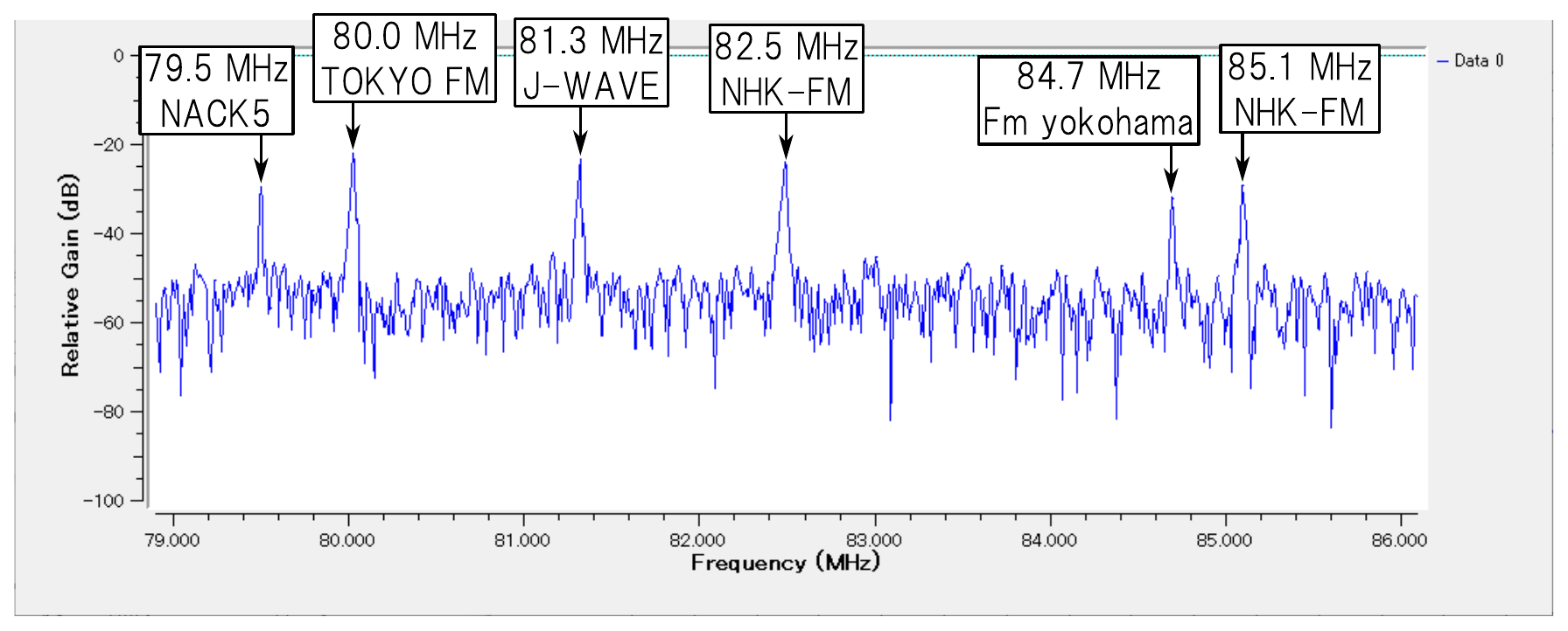 なお,ここではTOKYO FM(80.0 MHz)を意識して“80e6”という値にしましたが,この値はお好みで変更して構いません.NHK-FMなら“82.5e6”,J-WAVEなら“81.3e6”となります.