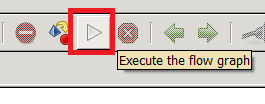 | 図53 “Generate the flow graph”ボタンをクリックしてPythonファイルを作成する | 図54 “Execute the flow graph”ボタンをクリックすると動作開始する |