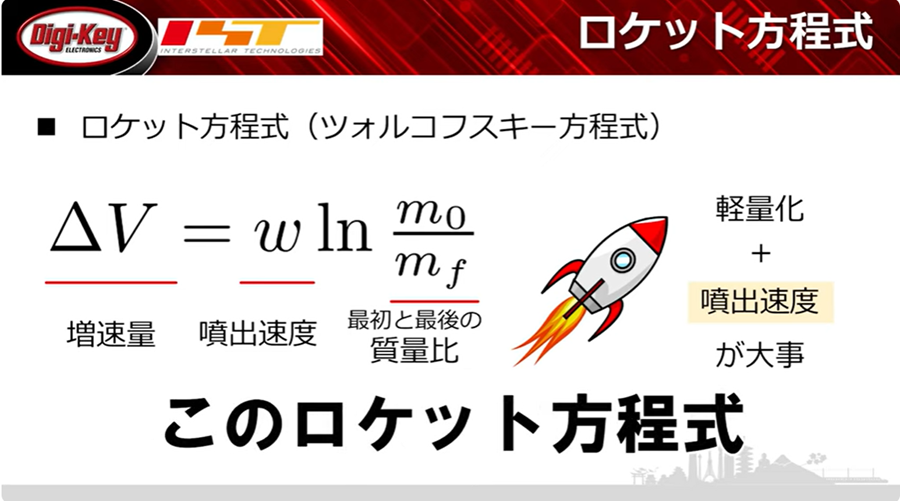 図1 宇宙軌道ロケット 成功の方程式 Mission1 ロケット方程式と最適な燃料.DigiKeyチャンネルにて視聴可能