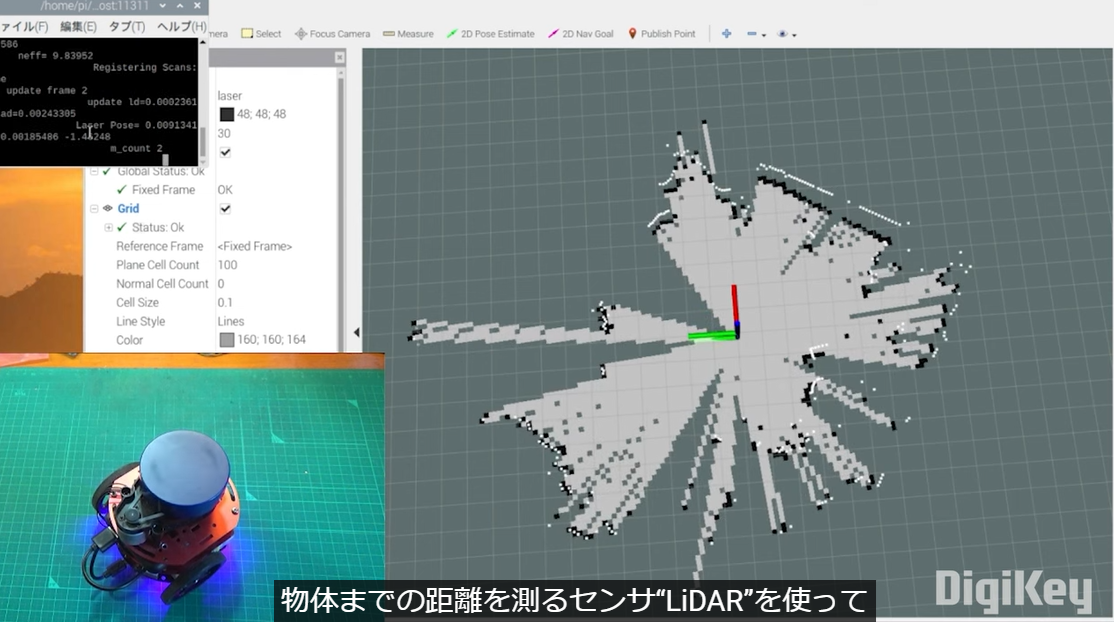 | 図1 LiDAR×ROSで作る地図作成ロボット[第1回]SLAMロボット“ROS次郎”の製作 DigiKeyチャンネルにて視聴可能 |