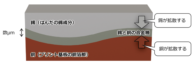 はんだが銅の表面に溶け込む際,微細な合金層(拡散層)が形成されます.この合金層は,はんだと基板の銅との間で非常に強力な接合を生み出します.