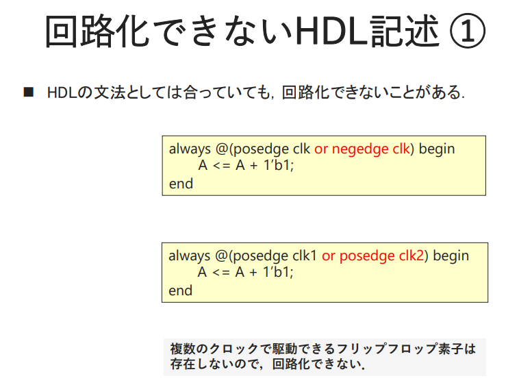HDL記述が回路化できない理由はいくつかあります.
