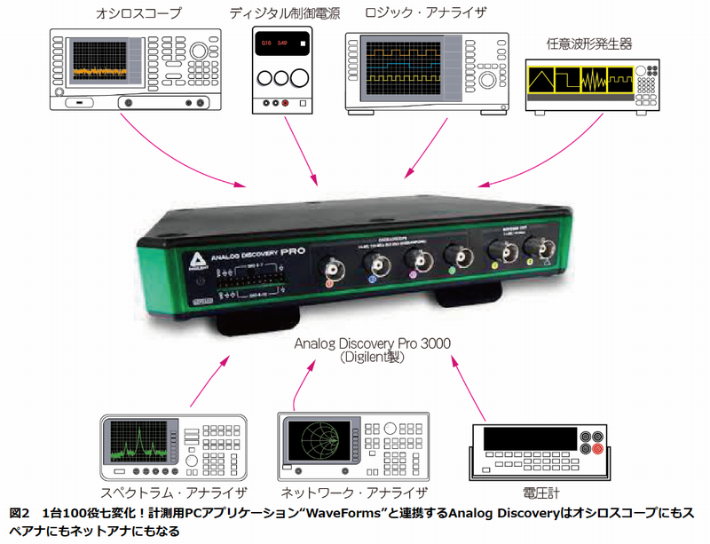 Analog Discoveryシリーズはフレキシブルな設定が可能な高性能USB測定器です.アナログ信号処理に特化し,ディジタル信号処理をPCに委ねる設計が特徴です.
