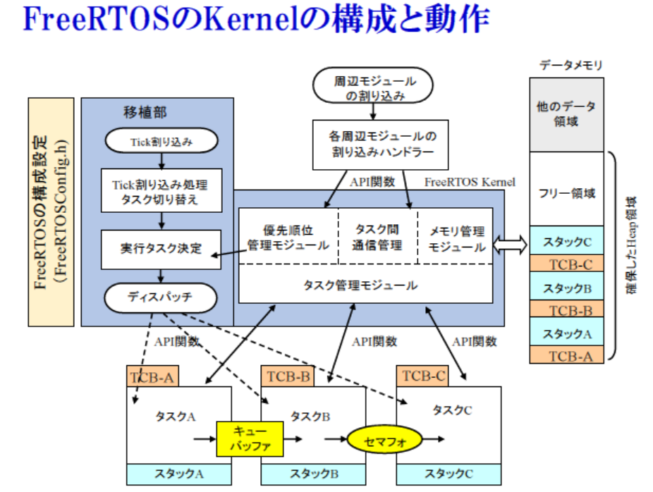 FreeRTOSの中心的な機能は,タスク管理とスケジューリングです.以下にその主要な動作を解説します.