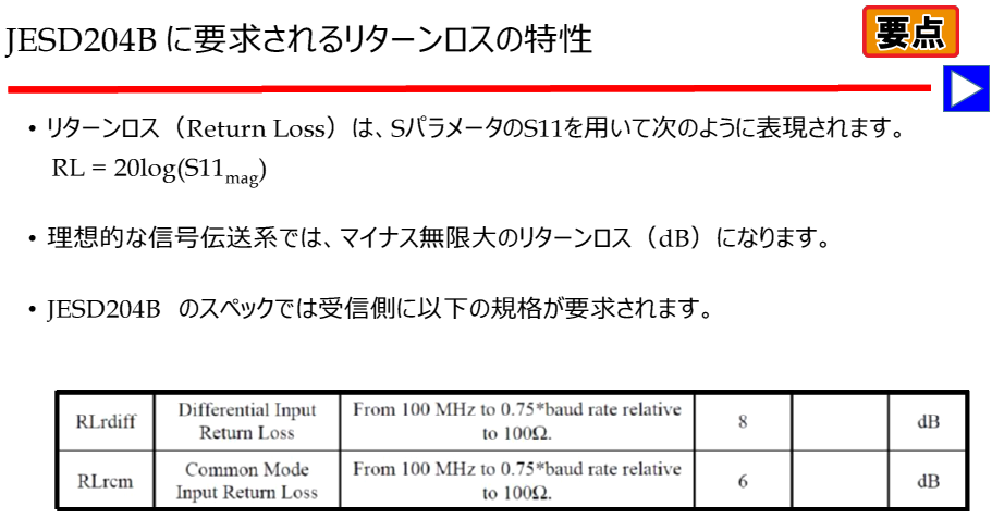 JESD204B仕様書には,受信側のリターン・ロスに関する詳細な要件が記載されています.