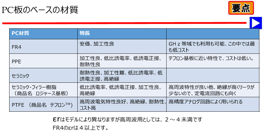 高速ディジタル信号や高精度アナログ信号の伝送には,基板材の選定が重要です.代表的な基板材としてFR4,PPE,ロジャース基板(セラミック・フィラー樹脂),テフロン(PTFE)などが挙げられます.