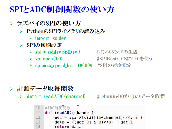 MCP3002は2チャネルのA-Dコンバータで,ラズパイからSPI通信で制御できます.A-D変換の基本的な流れは以下のとおりです.