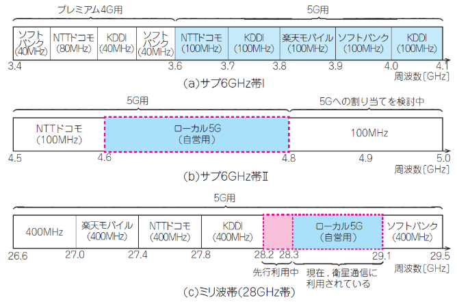 5Gの周波数割り当てには,以下の3つのバンドが含まれています.