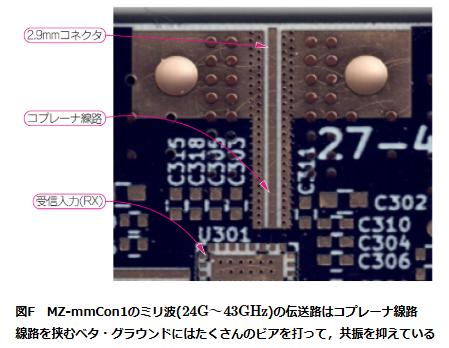- ミリ波信号(27GHz~43GHz):コプレーナ線路を使用し,ビアによる影響を低減
