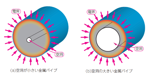 図1 高周波電流が導体の表面に集中する現象「表皮効果」によって,電流が流れる断面積が小さくなり,信号の減衰が増大する問題を引き起こす.画像クリックで動画を見る.または記事を読む.[提供・著]加藤 隆志 |
