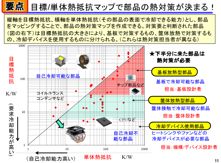 大電力デバイスは発熱量が大きいため,単体での放熱だけでは温度管理が困難です.目標熱抵抗が1K/W以下の部品では,ヒートシンクやファンを組み合わせて熱を効率的に外部に逃がす必要があります.TIMを介して部品と筐体を接触させることで,伝熱面積を広げ,直接空気や冷媒に熱を伝えることが可能です.筐体伝導は,スマホや車載機器,基地局などで主流の冷却手法です.