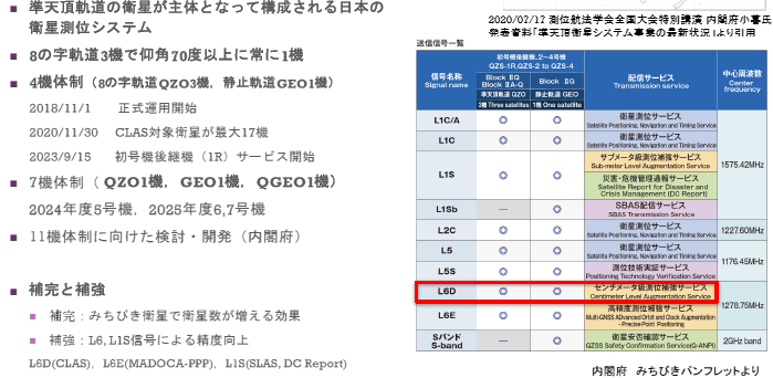 - 補強:L6信号やL1S信号による測位精度向上