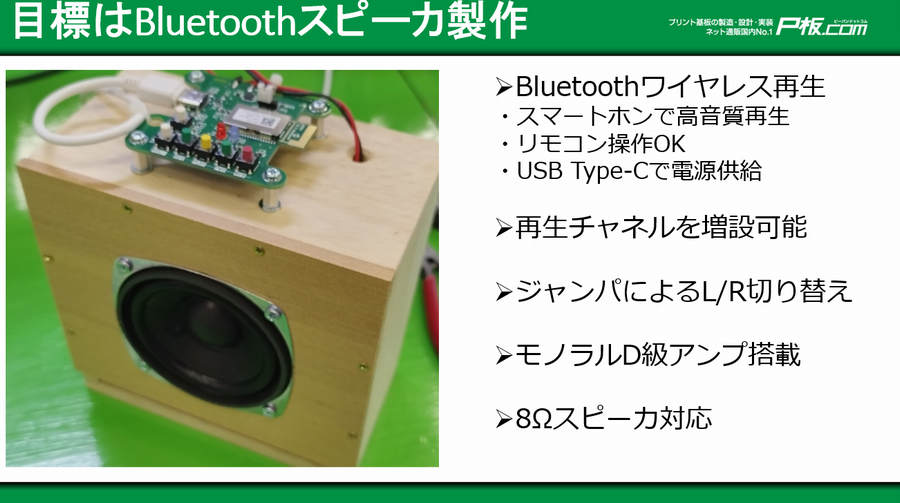 今回製作するBluetoothスピーカは,スマホとペアリングして高音質な音楽再生が可能なデバイスです.以下に基板設計の主要ポイントを示します.