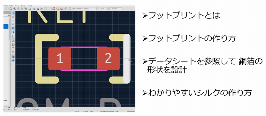 フットプリント設計では,寸法の正確さと配置支援機能(グリッド)の活用が成功の鍵です.部品の端子とパッドを一致させ,文字と図形の整理を行い,CAD上で部品の物理的形状を忠実に再現することで,はんだ付けや実装時のトラブルを未然に防ぐことができます.