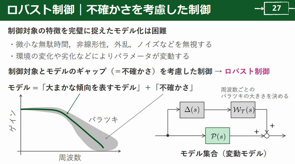 この不確かさを考慮に入れた「ロバスト制御」が重要です.