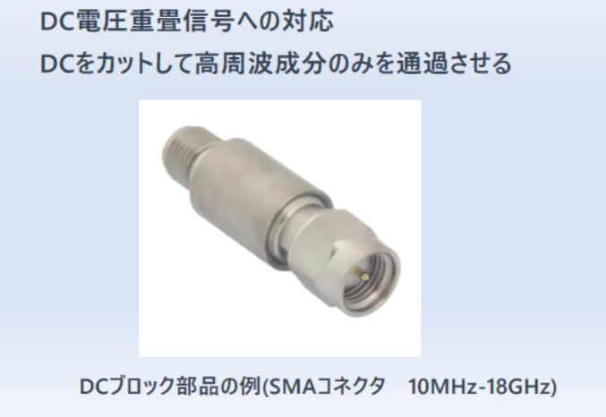 高周波測定器は直流成分に弱いため,DCブロックを使用することで,直流による故障を防止します.