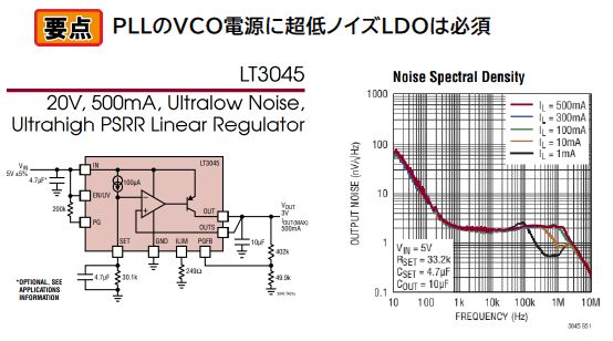 LT3045のようなLDOは,1/fノイズおよび熱雑音において非常に優れた特性をもっています.