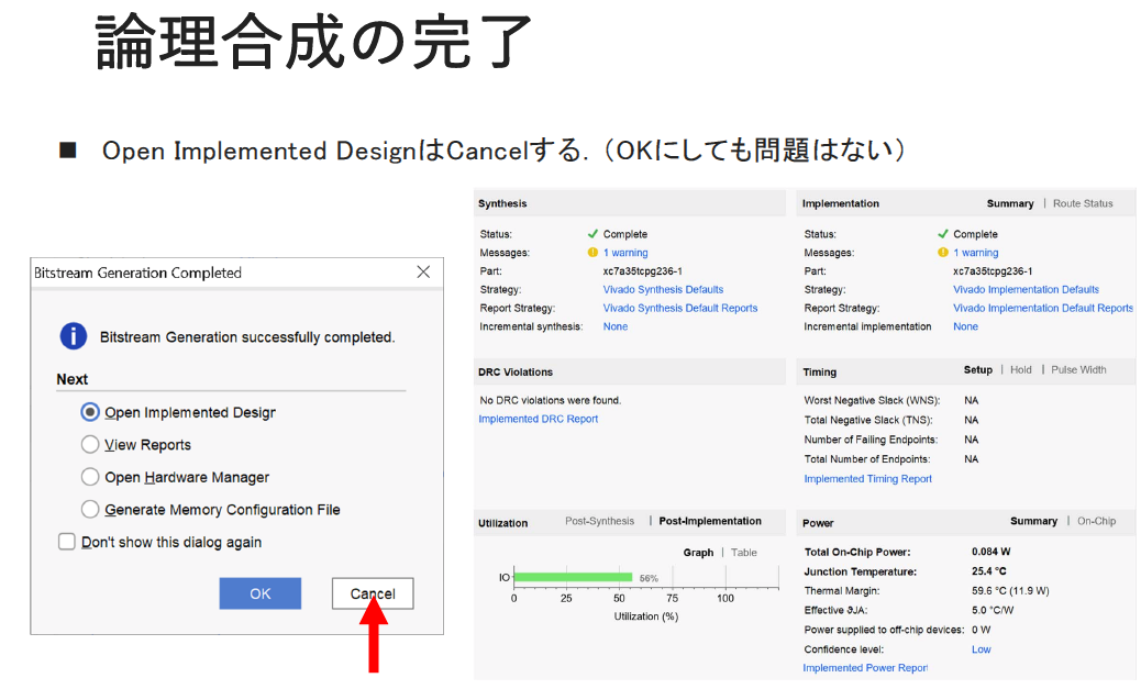- `Run Implementation`で配置・配線を行い,最終的なバイナリを生成します
