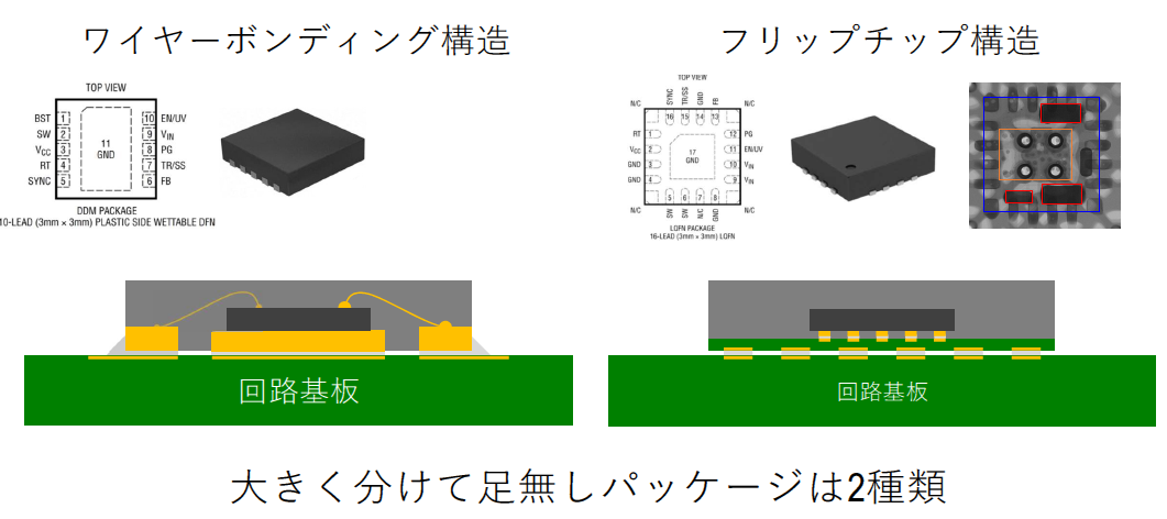 一方で,この構造は温度サイクルに敏感であり,基板とパッケージ間の膨張係数差によるストレスがはんだ接合部に集中する可能性があります.このため,適切な基板材料や設計手法が必要です.