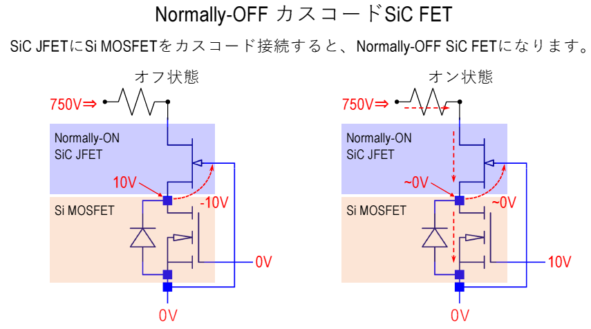 構造がシンプルで面積効率のよいJFETを活かしつつ,Si MOSFETによって制御性を高めるこの構成は,高効率電力変換回路に適しています.特に高速スイッチングとノーマリ・オフ動作が同時に求められる用途に有効です.