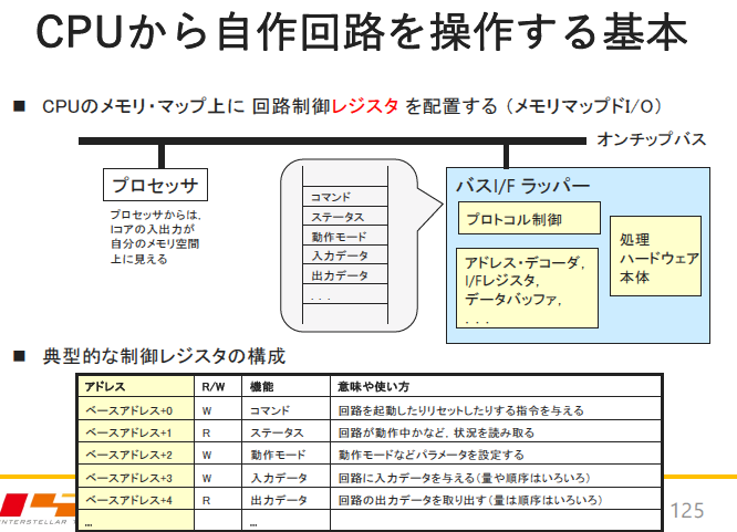 この設計により,CPUは簡易かつ直感的に回路を操作できます.レジスタの読み書き操作はシンプルであるため,ソフトウェアからの操作性が向上します.