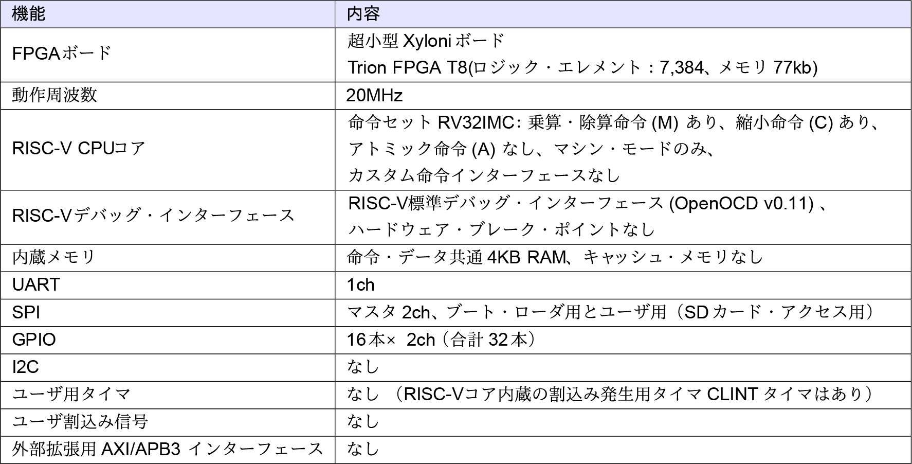 - 超小型Xyloniボードで動かすRISC-V Sapphire SoCの仕様