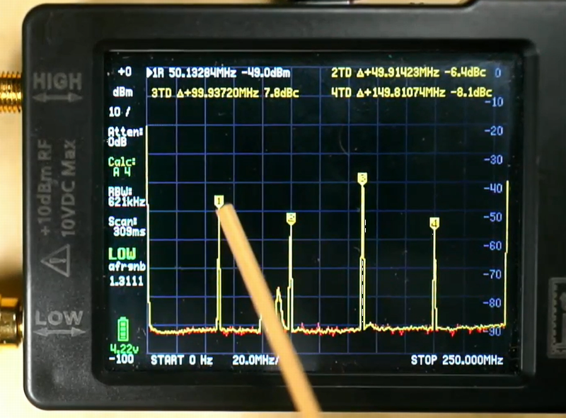 tinySAで50MHzの基本波に対する高調波を自動的に測定する