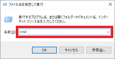 [Windows] キー + [r] キー を押して,図108のように「ファイル名を指定して実行」のウィンドウを出します.ここで“cmd”と入力して [Enter] を押すと,コマンド・プロンプトが起動します.