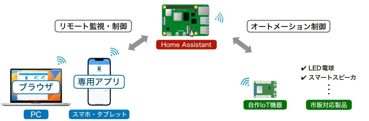 • 有線LANと無線LAN(Home Assistantサーバのセットアップで有線LANが必須になります)