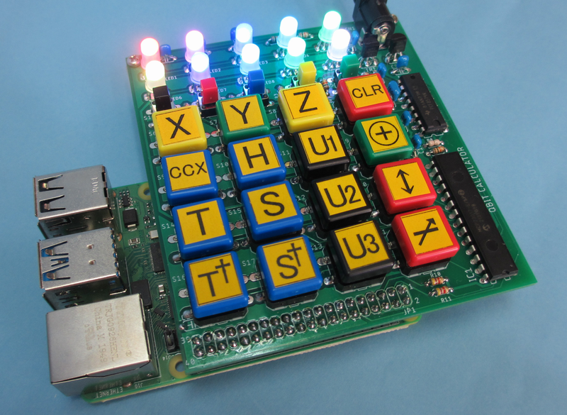 量子演算は,従来の論理回路のゲート動作に相当し,量子ゲートと呼ばれます.これを1つまたは複数の量子ビットに作用させて量子演算を行います.量子演算は,逐次的に実行するので,演算キーを押しながら実行することもできます.したがって,演算キーと量子ビットに相当するLEDを搭載した基板があれば,量子演算を模擬できます.
