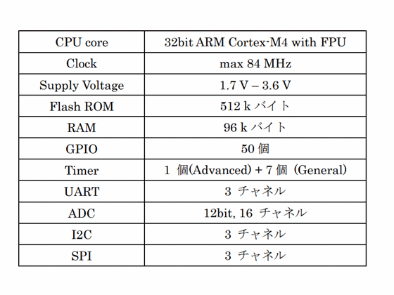 表1に,STM32F401マイコンの仕様を示します.STM32F401には豊富な周辺モジュールが搭載されていますが,いくつかのGPIO(“General Purpose Input/Output”,汎用入出力)とタイマ,UART,I$^2$Cモジュールだけを使います.そのため,違うマイコンを使っても問題なく実験を進められます.