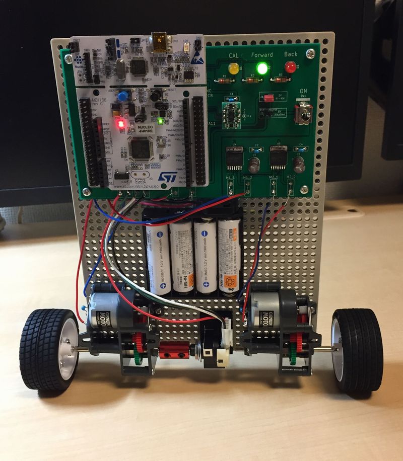 マイコンに組み込んだ物理モデルに倒立ロボットを自動操縦させる