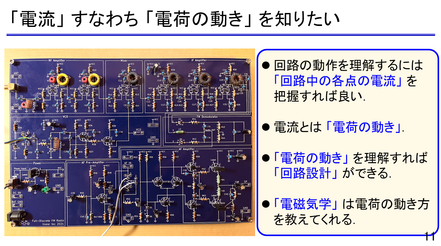 電気回路設計とは「電荷の動きを知ること」であり,そのために必要な理論をまとめた体系が「電磁気学」 電子回路の本質は「LCR回路」であり,本VOD製品ではL,C,Rを徹底的に理解することを目指す