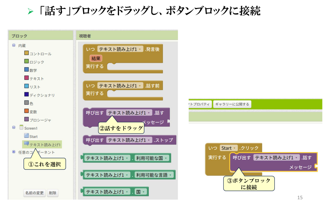 イベント処理を通じ,基本的なブロック操作を学ぶ