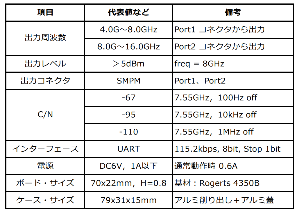 図1(b) 高C/Nマイクロ波帯シンセサイザ z-mmcon3-pllのスペック